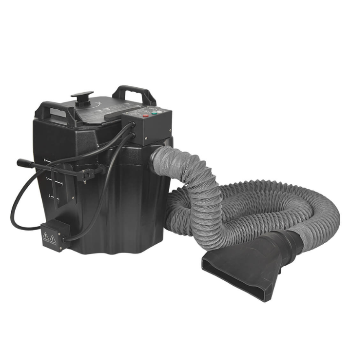 La máquina de niebla de hielo seco MK-F13 MOKA puede contener 10 L (2,5 galones) en la línea de flotación superior y 7 libras (3 kg) de hielo seco sólido para un círculo de trabajo.